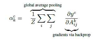 Recall that our gradients have shape [k, v, u]. We do pooling over the height v and the width u so we end up with something of shape [k, 1, 1] or to simplify, just [k]. These are our k alpha values.