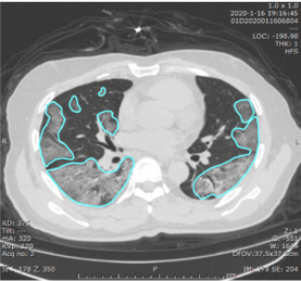 Example of lung opacities segmented by the deep learning model in Huang et al.
