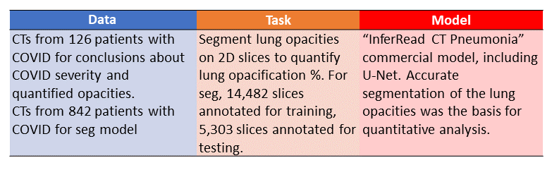 The previous paper focused on a diagnosis model for COVID-19. Paper #2 by Huang et al. has a different goal: to investigate the relationship between the amount of lung opacification and COVID-19 severity.