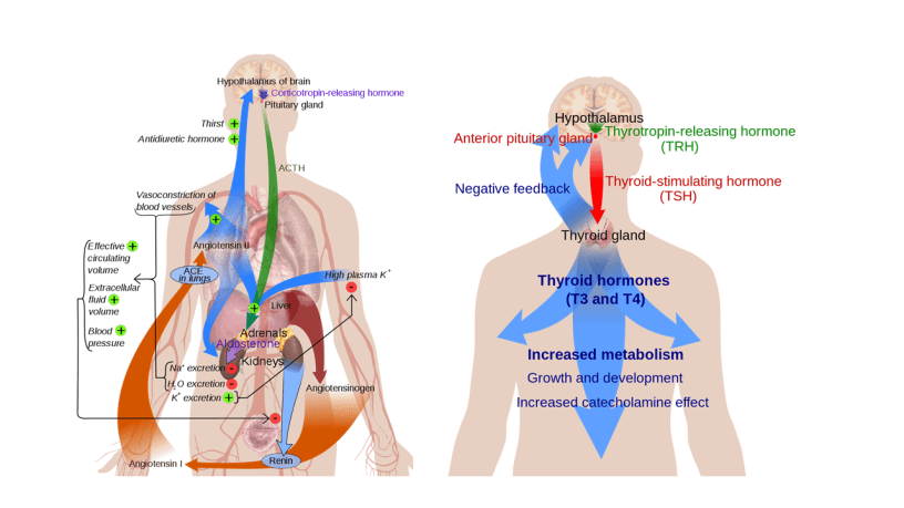 [Featured Images from Wikipedia, renin-angiotensin-aldosterone system and thyroid system. Public domain.]